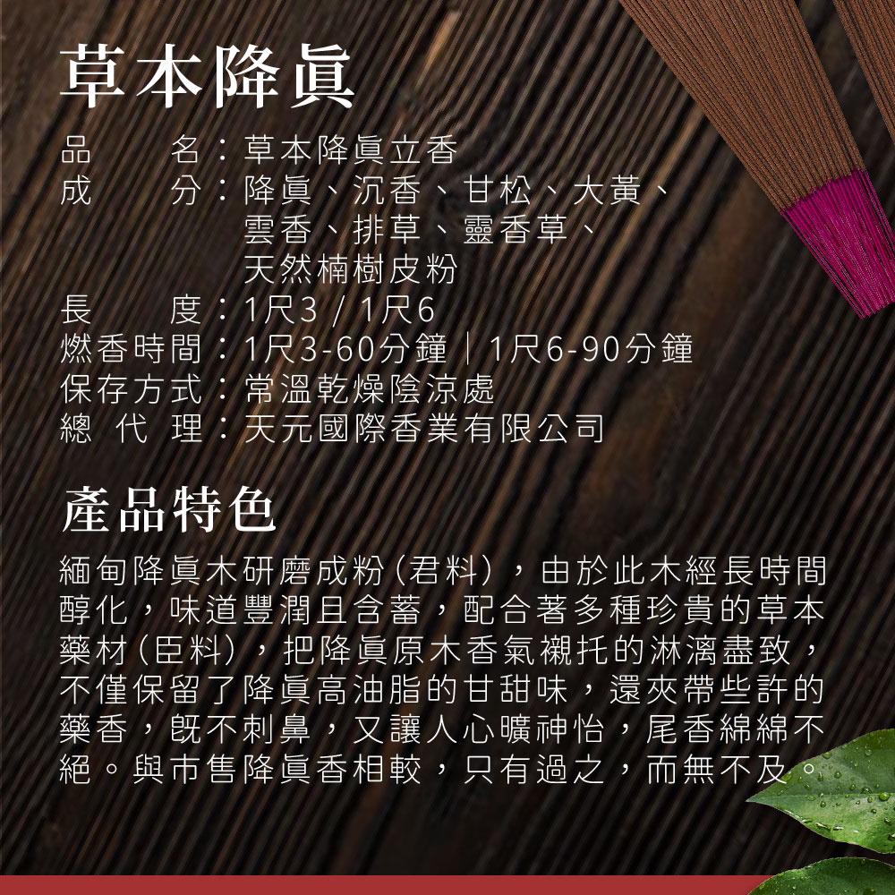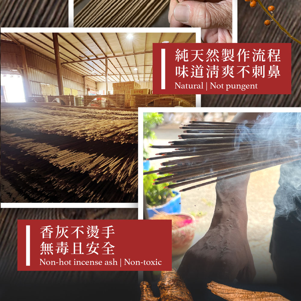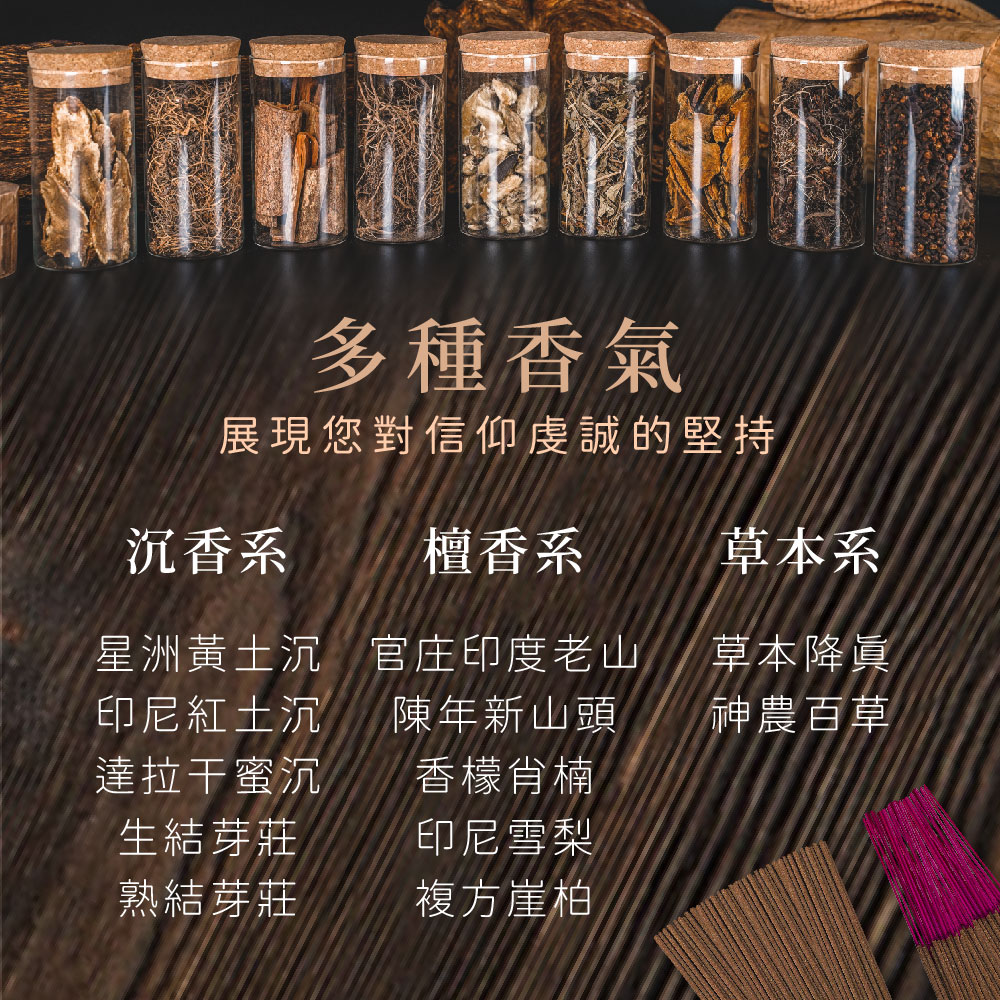 我們進口了‘’ 緬甸降真木 ‘’ 並研磨成粉(君料),由於此木經過長時間醇化,味道豐潤且含蓄,配合著多種珍貴草本藥材(臣料),把降真原木香氣襯托的淋漓盡致,不僅保留了降真高油脂的甘甜味,還夾帶些許藥香,既不刺鼻,又讓人心曠神怡,尾香綿綿不絕。與市售降真香相較,只有過之,而無不及。